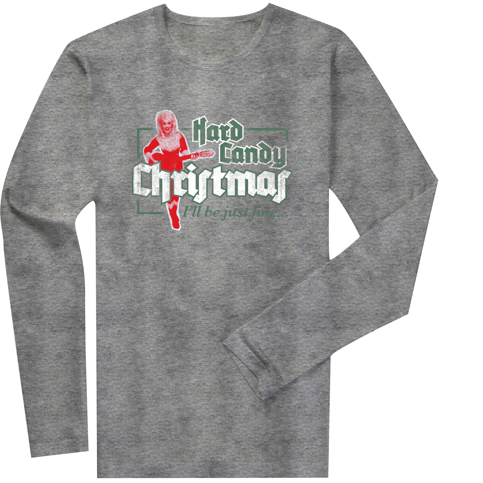 Grey Bella+canvas triblend long sleeve t-shirt with green, red & white inks.